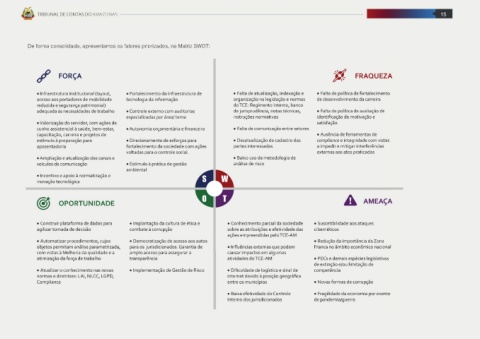 15 De forma consolidada, apresentamos os fatores priorizados, na Matriz SWOT: