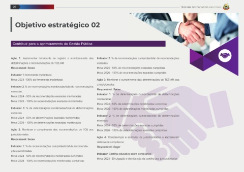 Meta: 2026 - 100% de recomendações monitoradas cumpridas Meta: 2023 - Divulgação e distribuição da cartilha aos jurisdicionados